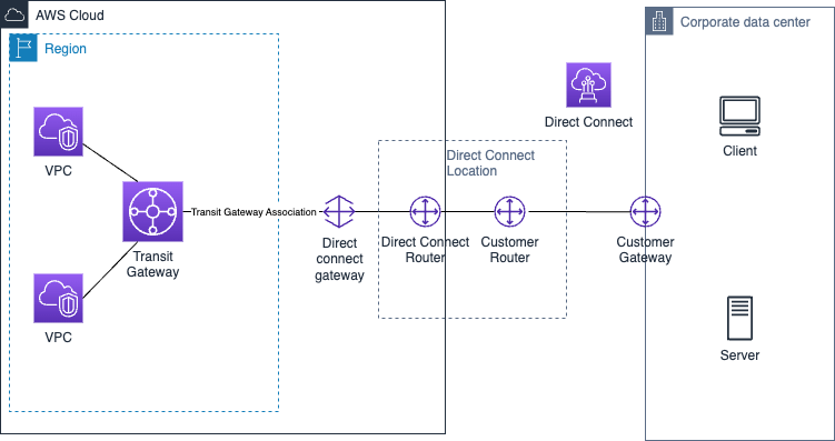 Note that a Direct Connect Gateway is connected to the Virtual Private Gateway. A Virtual Private Gateway is an endpoint that acts like a router at the edge of the VPC, that would interface with your Direct Connect connection. The Direct Connect Gateway allows for a single virtual interface from the Direct Connect location to support connections to multiple VPCs and regions.  Â