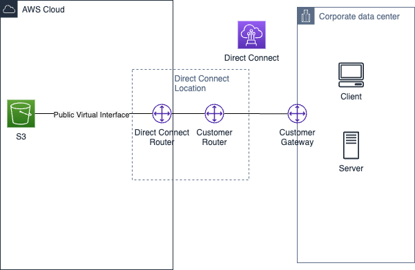 The diagram below shows how a typical direct connect setup to S3 would look.Â